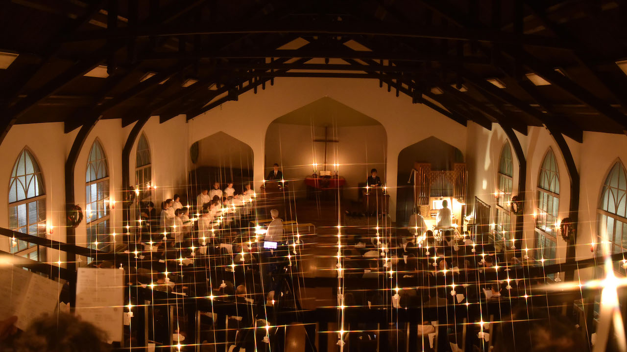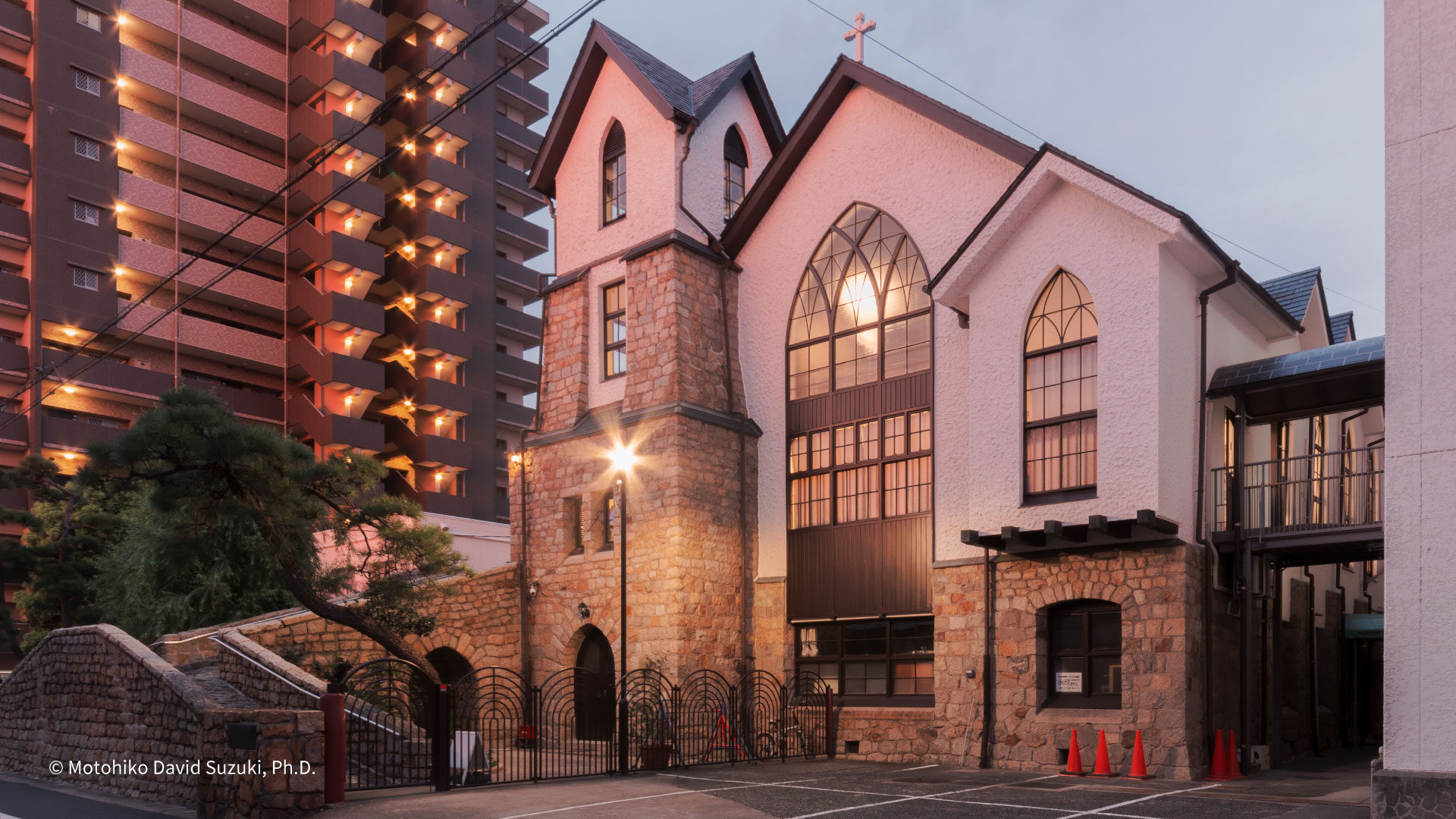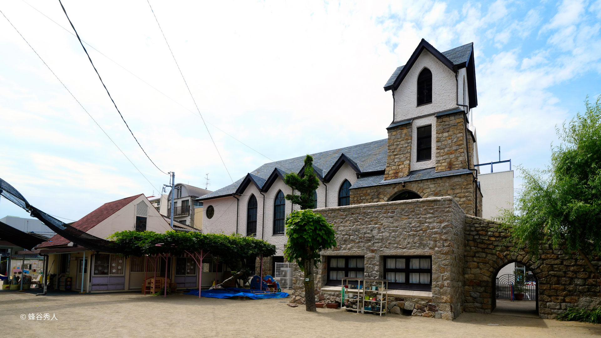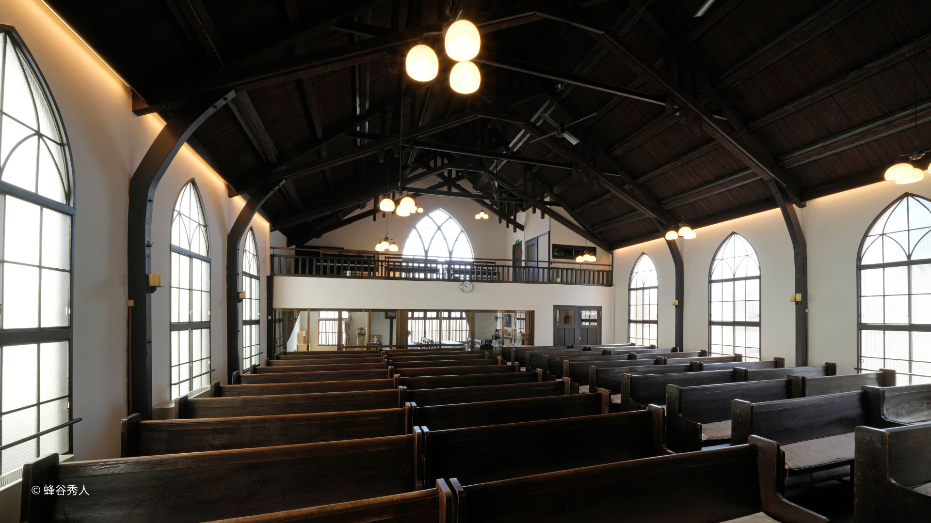 The church building is a beautiful wooden frame concrete structure designed by Isaku Nishimura, registered as a national tangible cultural property.